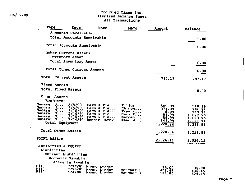 - - $797.17 liquid assets, including physical inventory Assets are $2,026.11